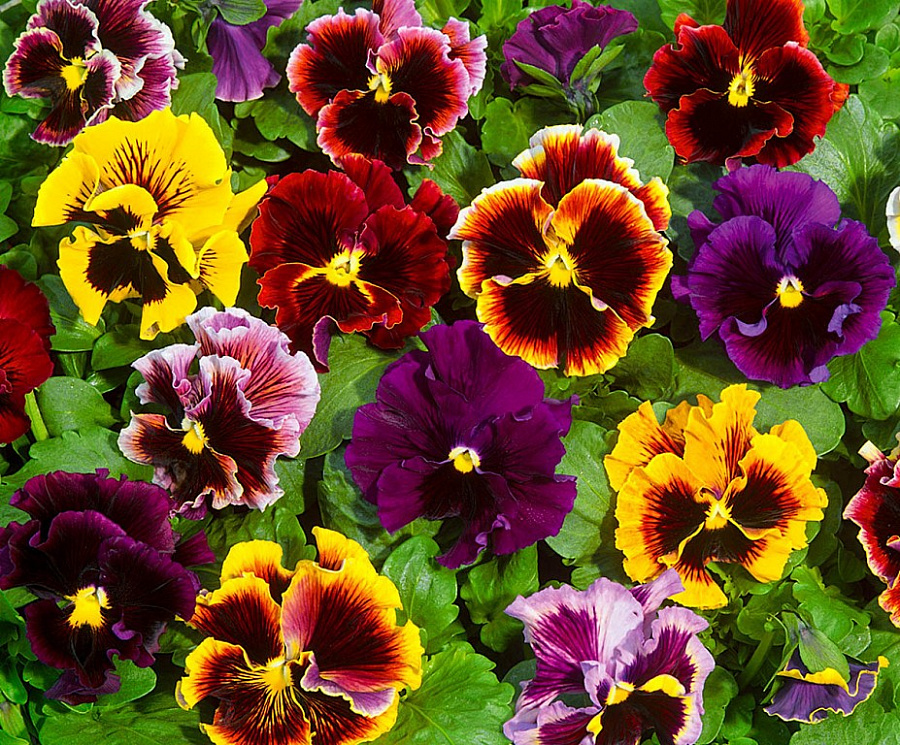 Семена анютиных глазок Викторианская смесь порадуют любителей изящных цветов яркой окраски. Края лепестков украшены элегантными складками, отчего соцветия выглядят весьма необычно и привлекательно. Смесь состоит из экземпляров различной расцветки:
