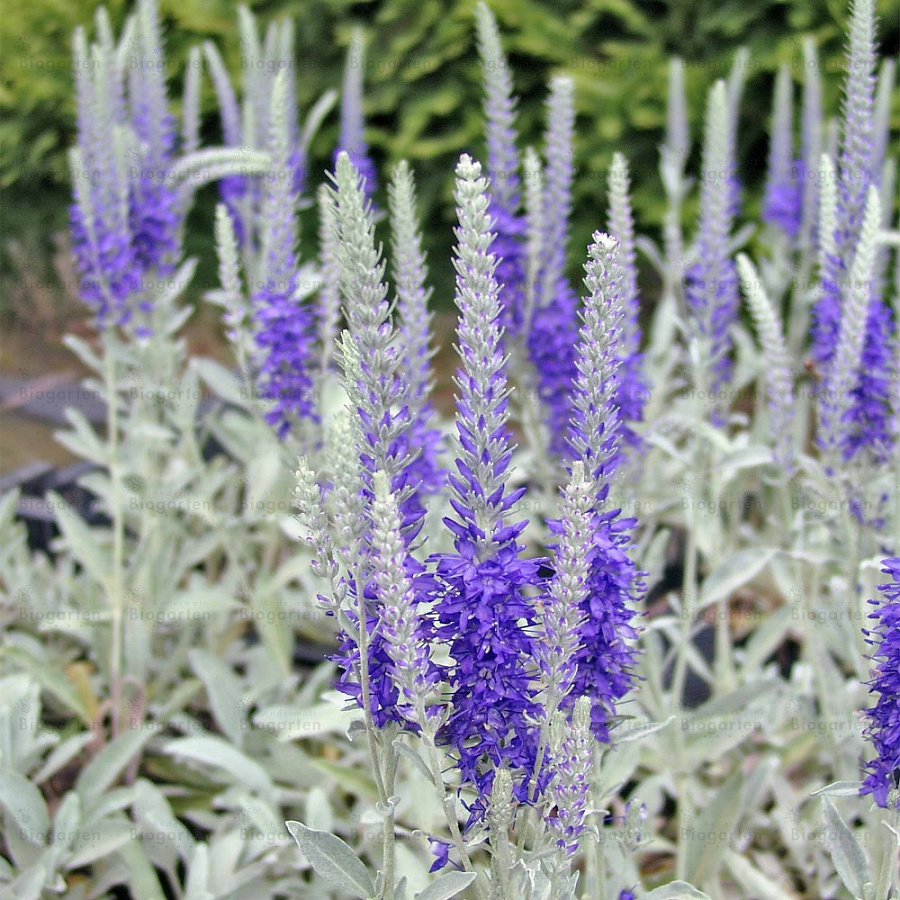 Рассада вероники Седая (Incana) имеет небольшие листики, которые расположены на войлочно-опушенных крепких стеблях. В середине июня появляются темно-синие цветы, которые представляют собой колосовидную форму. Цветение радует приблизительно около 40 дней. В высоту растет 25-35 см. Достоинства растения: - подходит для посадки как на солнечных участках, так и в полутени - не боится заморозков - хорошо переносит засуху Семена вероники Седая рекомендуется посадить на дренированной, рыхлой почве. Поливать нужно часто, однако, не терпит переизбытка влажности. Используется в цветниках различного типа.