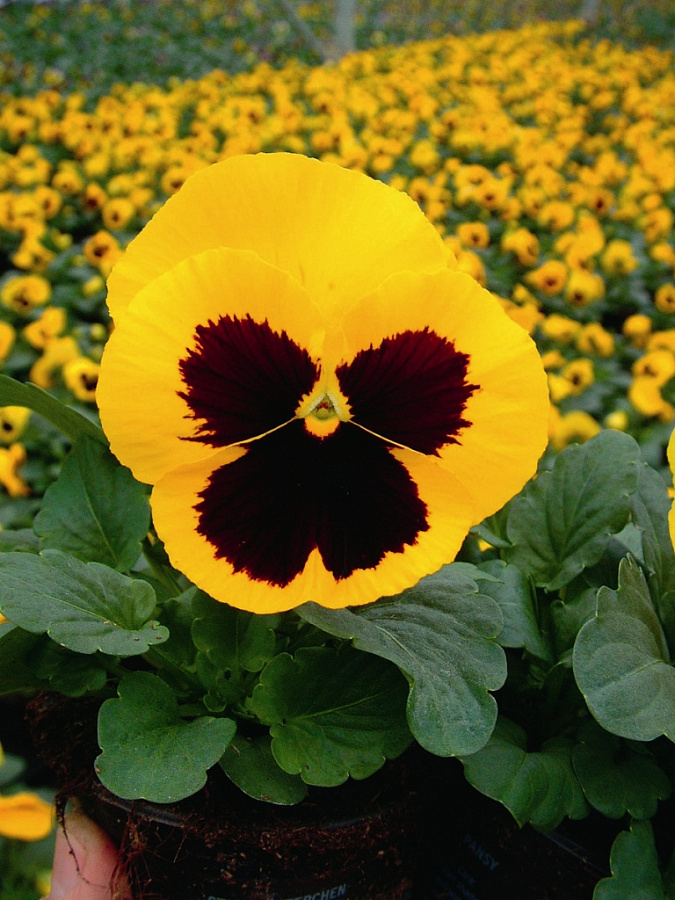 Виола крупноцветковая дельта голд виз блотч - это удивительное растение, которое поразит вас своей красотой и изысканным цветом. Ее бордово-желтые цветки радуют глаз в течение июня и июля, создавая неповторимый акцент в вашем саду. Высота этого растения составляет 10-15 см, что делает его идеальным для групповых посадок. Листья виолы имеют форму сердца и придают ей особый шарм.